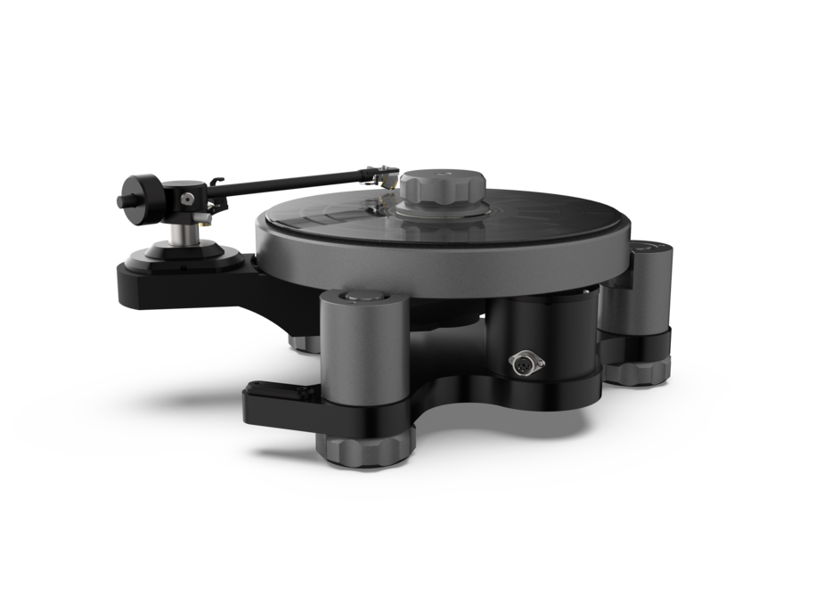 The turntable features a newly developed conical, resiliently-coupled suspension system providing isolation and stability while also simplifying setup for a range of end-users.