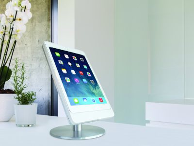 The table base is machined out of high-grade aluminium and is available in two versions, each optimised for either a portrait or landscape orientation of the iPad.