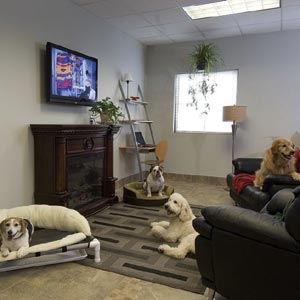 The 30,000-square-foot facility includes 44 individually themed suites to house pets. For slightly less exclusive accommodations, there are three dormitories that can host over 150 dogs. There are also 37 cat condos.