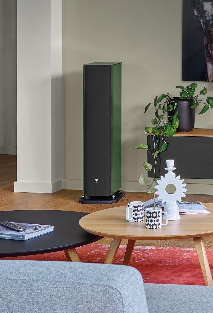 With the benefit of Focal’s sound know-how, the loudspeakers boast outstanding technological innovations that are exclusive to the brand, underlines the maker, including the ‘M’-shaped inverted dome TAM tweeter, successor of the TNF tweeter. This innovative feature reproduces treble more faithfully by going further into the high and low ends of the spectrum. The surround on the midrange is equipped with TMD (Tuned Mass Damper) technology to stabilise how the surround behaves, reducing distortion and delivering perfectly balanced dynamics. The ‘M’ shape of the dome is another Focal innovation, capable of reproducing high frequencies up to 30kHz. In the woofers the magnet has been revamped to deliver more impact in the bass. Focal’s engineers have also reworked the crossovers with better components to improve loudspeaker balance. Innovation is never just about the technology at Focal. The brand is also offering a new finish: Moss Green High Gloss. With its deep green shade and high gloss varnish, it lends a bright and modern appearance to the loudspeakers. It is joined by the Black High Gloss and Prime Walnut finishes, in all their timeless elegance. Each finish is combined with leather-effect front panels.