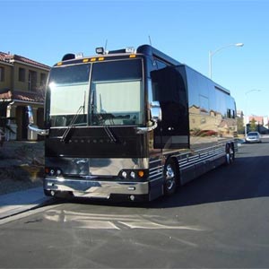 The interior design of the Prevost XL motor coach was done by Superior Coach Interiors in Nashville, Tenn., while the electronics were installed by Digital Home Lifestyles of Phoenix, Ariz.
