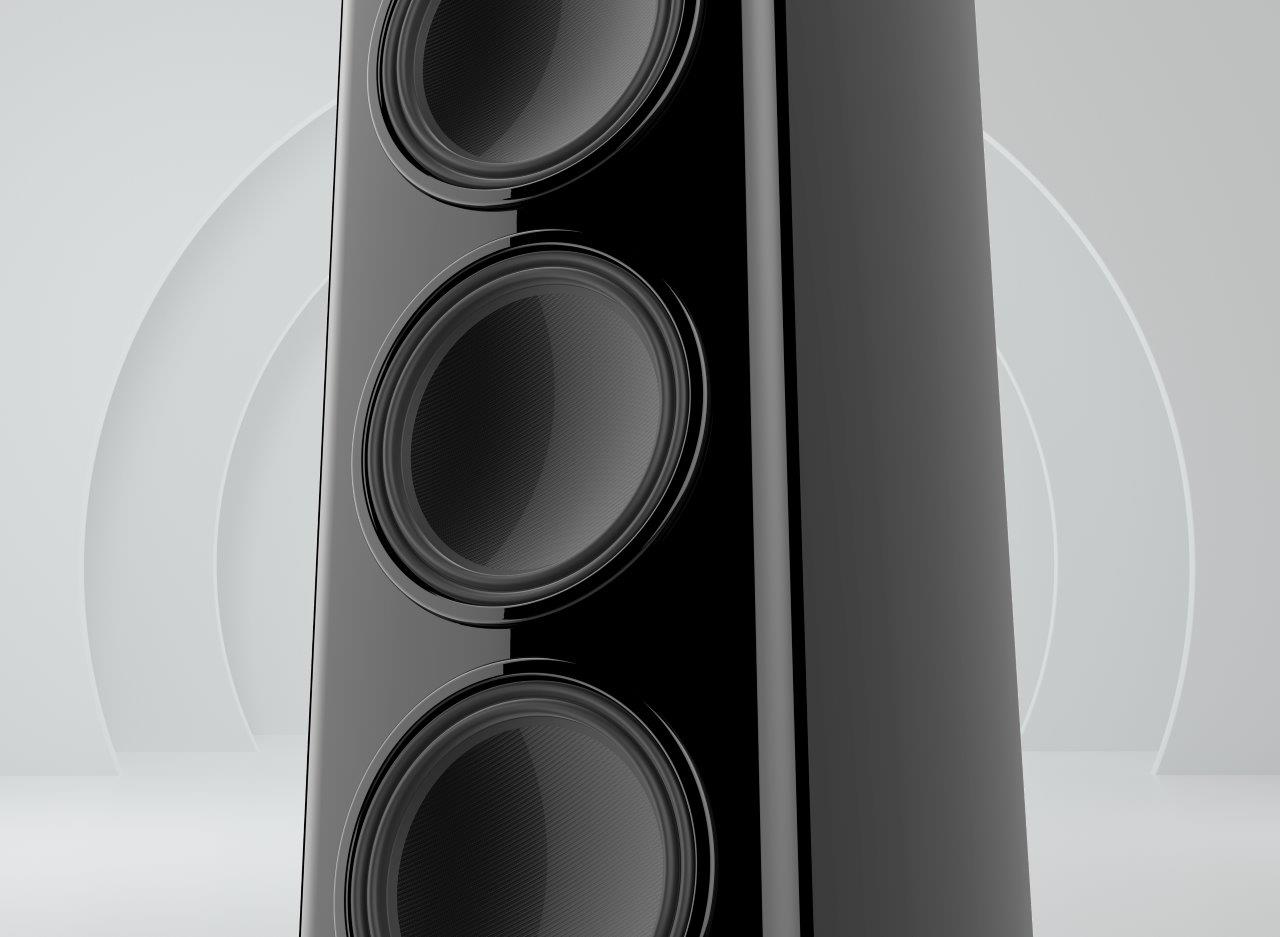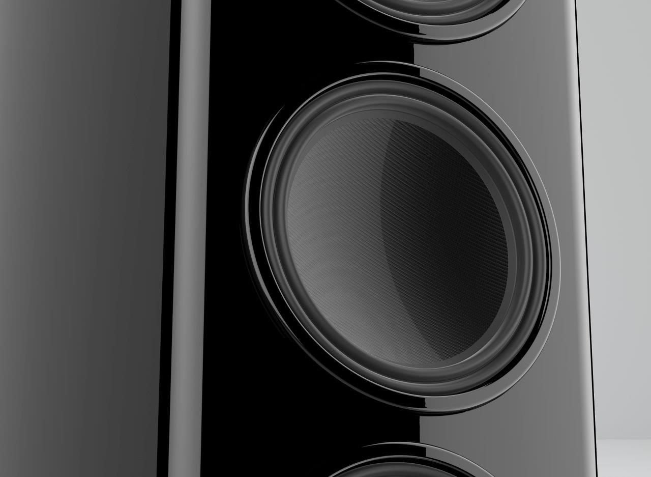 The PS2K’s high black gloss finish, carbon trim, and aluminium base, along with its included glide feet for hard floors and spikes for carpeting, complete the comprehensive picture.