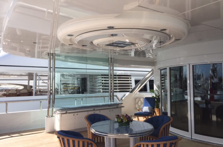Along with the audio system, the yacht’s automation system incorporates a Vantage lighting system, Somfy motorised shades and 3D TVs with surround sound.