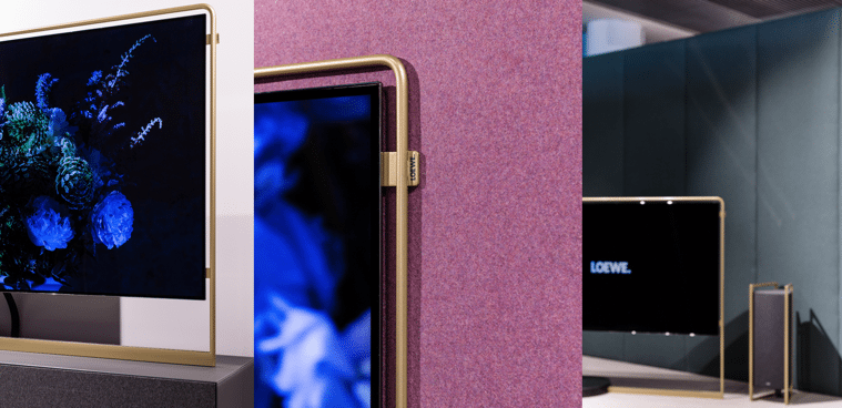 Bodo Sperlein, Loewe’s creative director, highlighted the beauty of the super-slim OLED screen by enclosing it within a crafted steel frame, creating a contrast of textures and materials. This gives it the impression that the screen is floating in the middle of the air – giving viewers an unobstructed view of whatever is on screen.