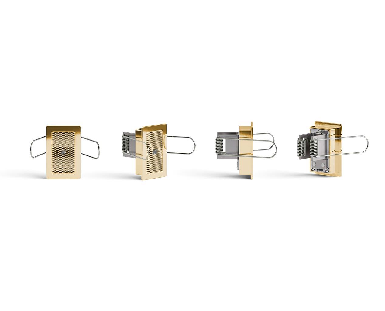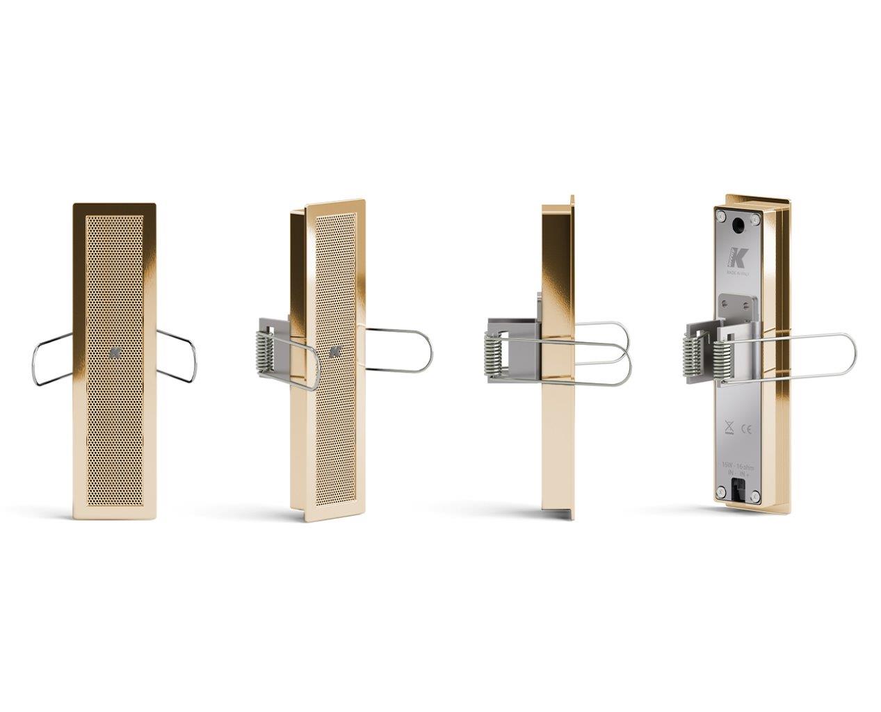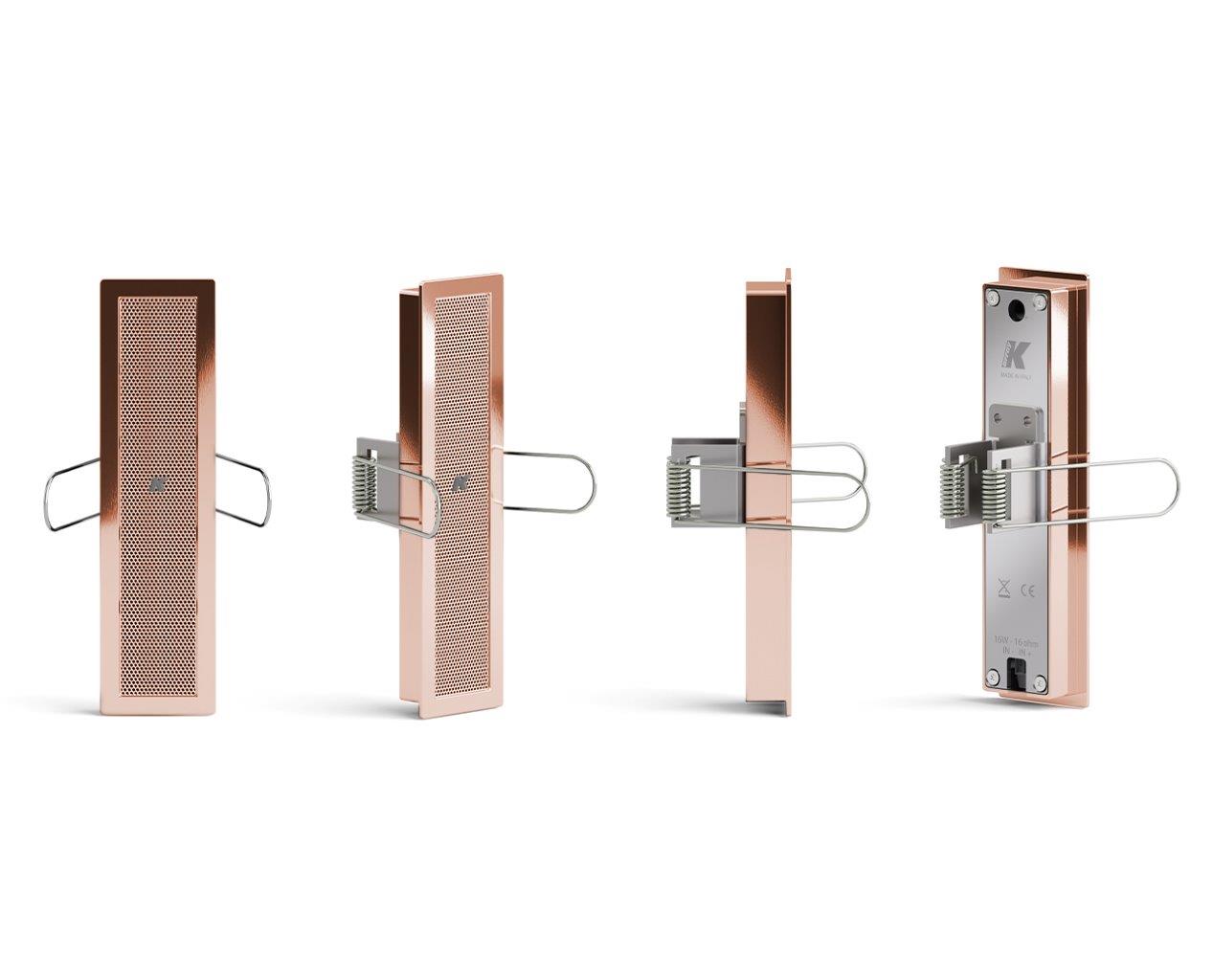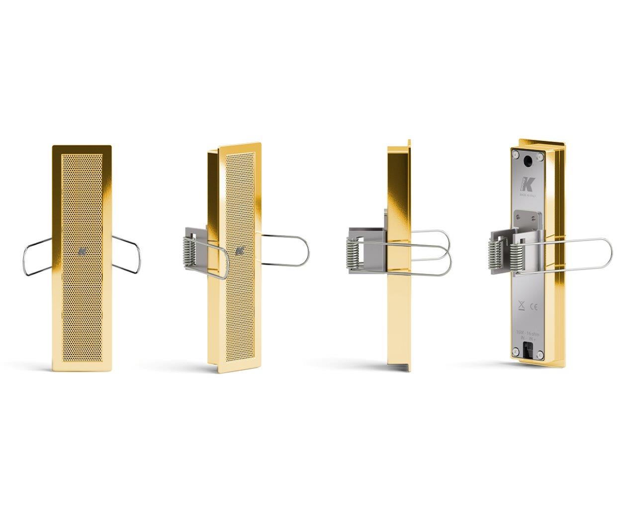 pure, minimalist aesthetic and makes installation easy, for applications that require the audio to be completely invisible, the KZ1R I and KZ14R I versions have been designed for flush mounting into walls and ceilings. A wide range of colours and metal finishes ensure that all Lyzard models blend seamlessly into any décor says their creator.