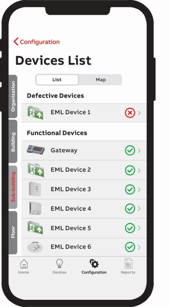 • Upload your building maps and have current status and precise location of each emergency lighting luminaire in your building