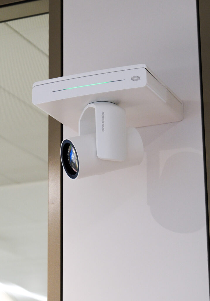 In larger meeting spaces, Crestron 1 Beyond cameras were selected for their Visual AI capabilities that enable smooth tracking abilities to deliver a seamless meeting experience. With the Automate VX multi-camera system, the cameras around the room are directed to properly capture and frame active speakers based on their posture and the direction in which they are speaking.