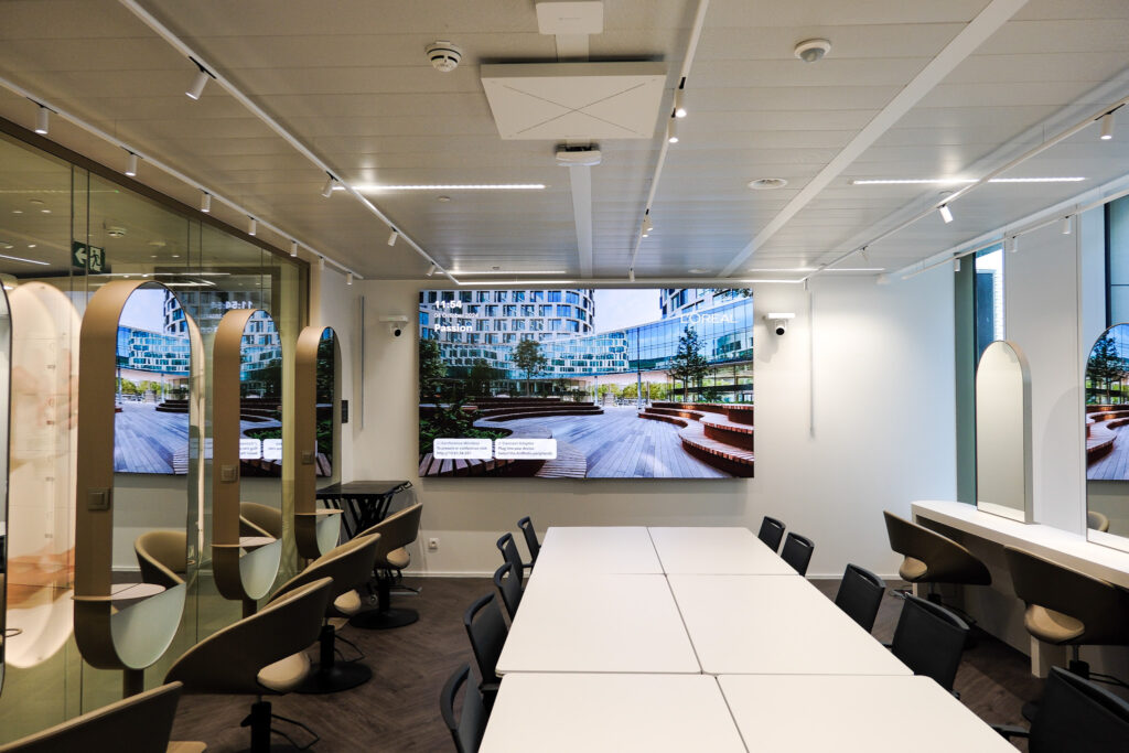 Beyond these meeting spaces, L’Oréal aimed to create a state-of-the-art training environment that would allow them to interact with customers and showcase their beauty products.