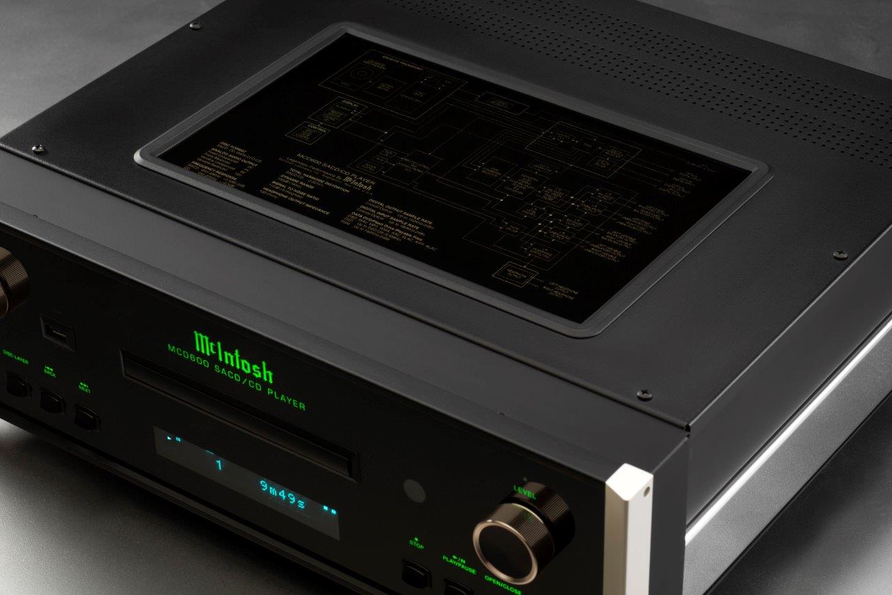 The MCD600 features the familiar McIntosh styling with a polished stainless-steel chassis, black glass front panel, illuminated logo, knobs and aluminium end caps. The front panel features new direct-LED backlighting, while the top has a new screen-printed glass panel listing performance specs and a block diagram.