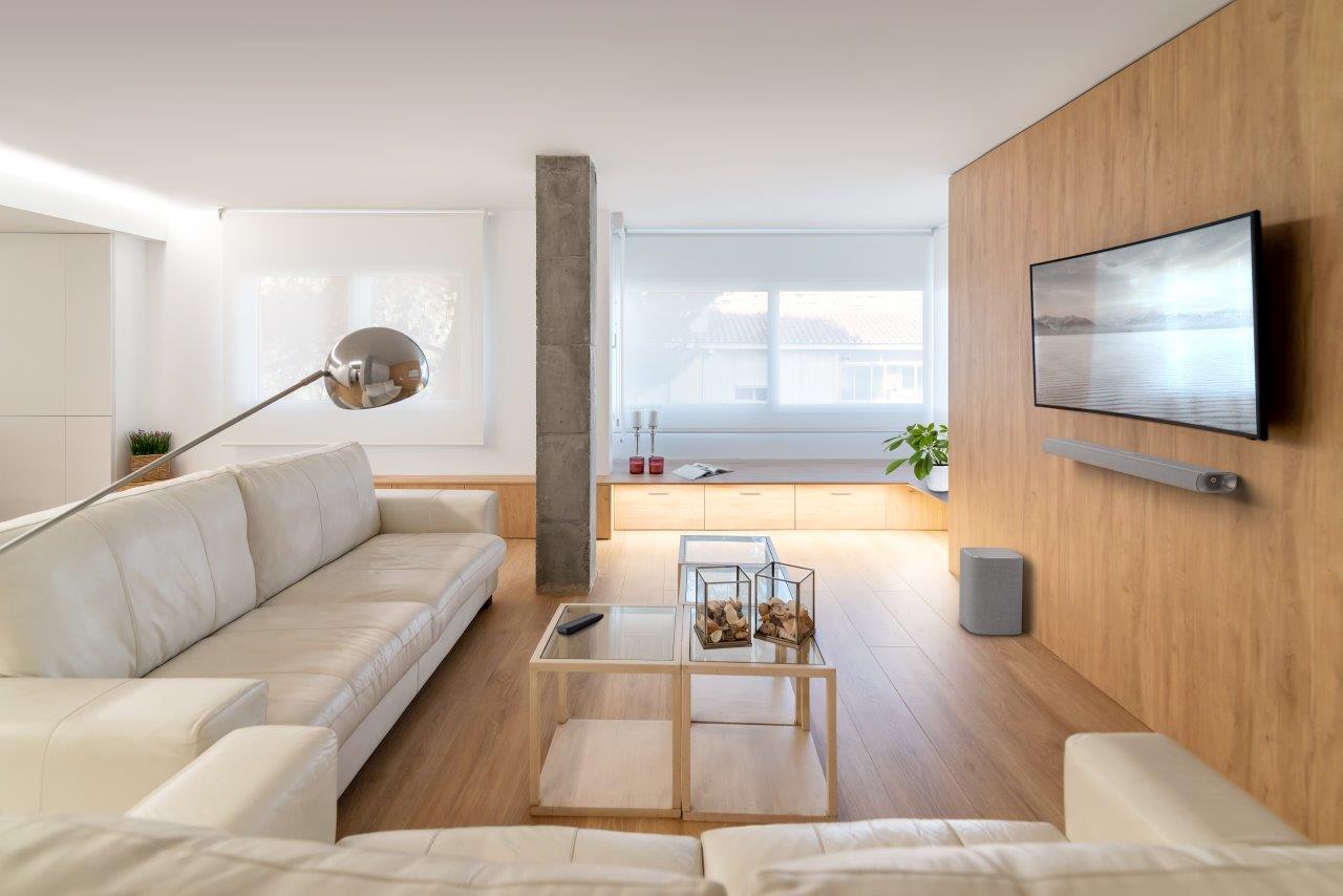Channelling the signature Harman Kardon aesthetic in all elements of its design, including metallic details, the MultiBeam 1100 is a handsome piece. Harman Kardon finishes the soundbar in Winter Gray or Classic Black real-wool fabric from Kvadrat, the European leader in high-quality acoustic textiles. The dirt-repellent and flame-retardant tactile material completes a practical yet refined and elegant design.