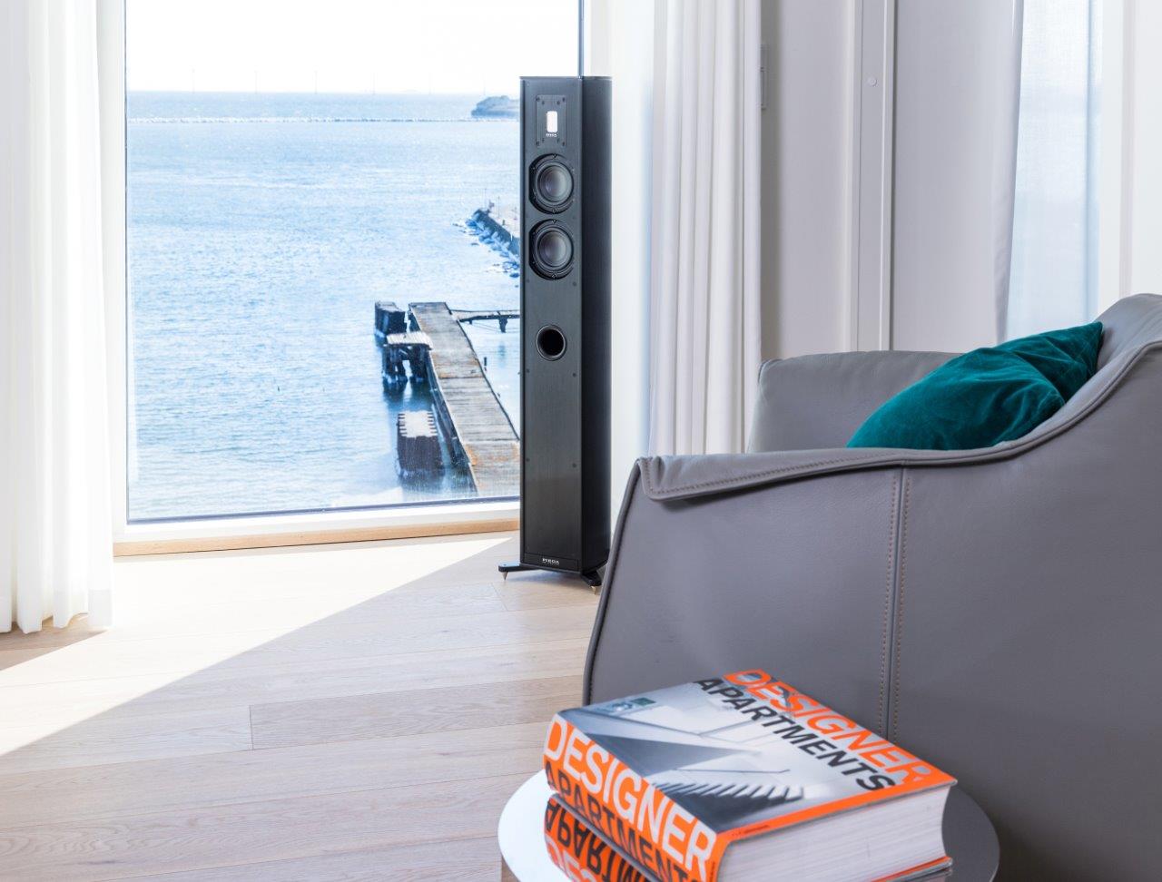 The Premium 701 is barely larger than its smaller sister model. It also uses a 2.5-way system. Two 140 mm MDS converters cater for the bass, one of the two also handles mid-tone emission. The newly developed LDR 3056 ribbon, used here for the very first time, produces the high tones. The Premium 701 can be operated in almost any room thanks to its dynamic and powerful sound.