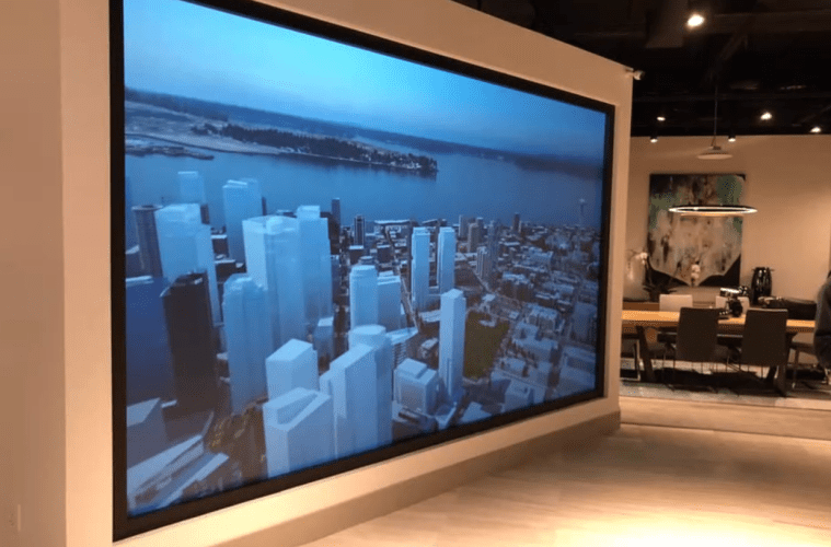 The bendability of FlexGlass came in handy once again in a project spearheaded by the systems integration firm Wipliance. In this case, FlexGlass was used as a ‘virtual reality window’ to display to prospective buyers of luxury high-rise condo units the outdoor view from any of the upper-level residences. As the centrepiece of the developer’s sales centre, the 183in FlexGlass screen and the images presented on it helped seal many deals.