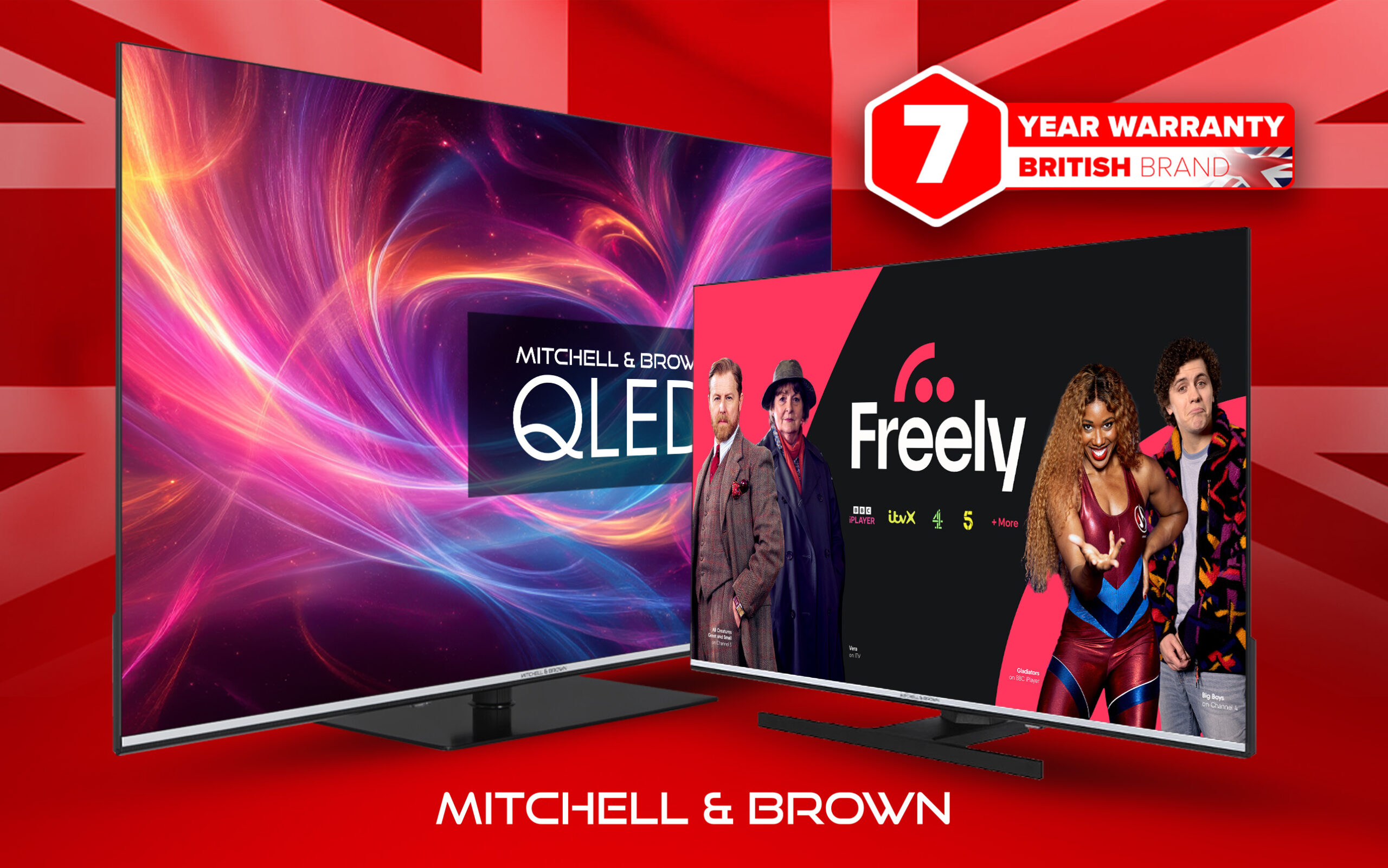 As with all premium Mitchell & Brown TVs sold through High Street retailers exclusively, this premium Freely range is supported by the brand’s seven-year guarantee.
