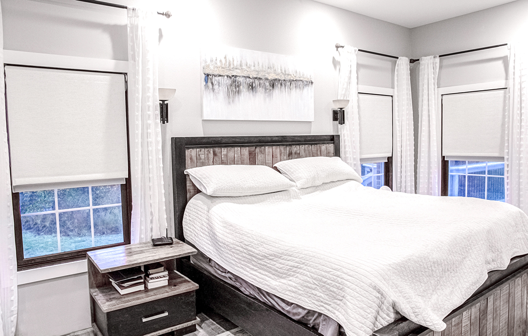 Like most window treatment solutions, PowerShades provides the ability to not just control ambient light and offer privacy, but also to increase security with the ability to mimic occupancy as well as make the home more efficient and appealing to live in by automating repetitive tasks throughout the day.