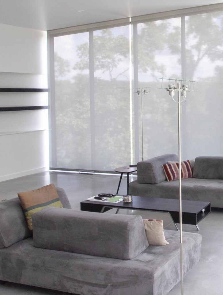 The Open Roll offers the most minimal look created to fit a large range of themes. Versatile hardware options are offered in matte plastic or anodized aluminium. These shades can be concealed with a custom top treatment or left uncovered for a minimalist look.