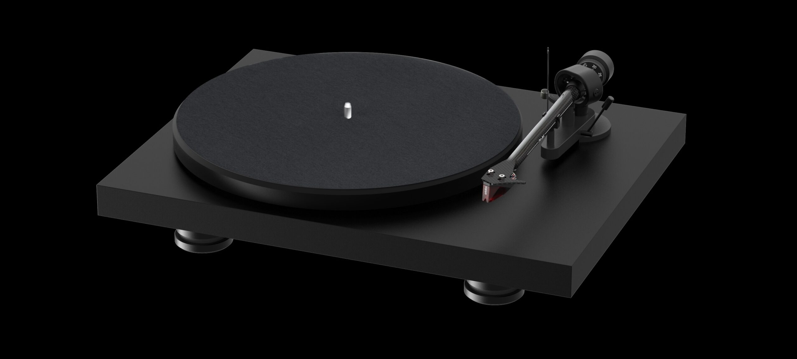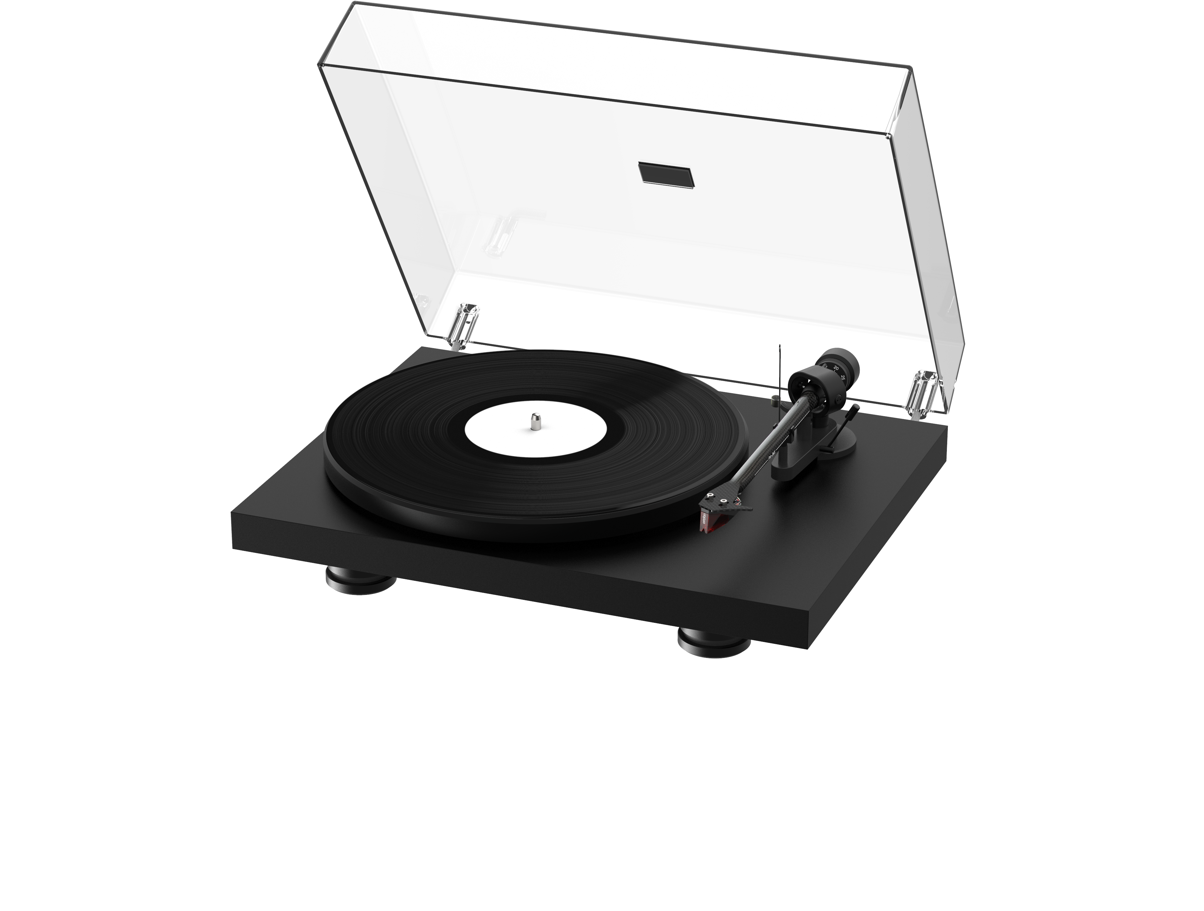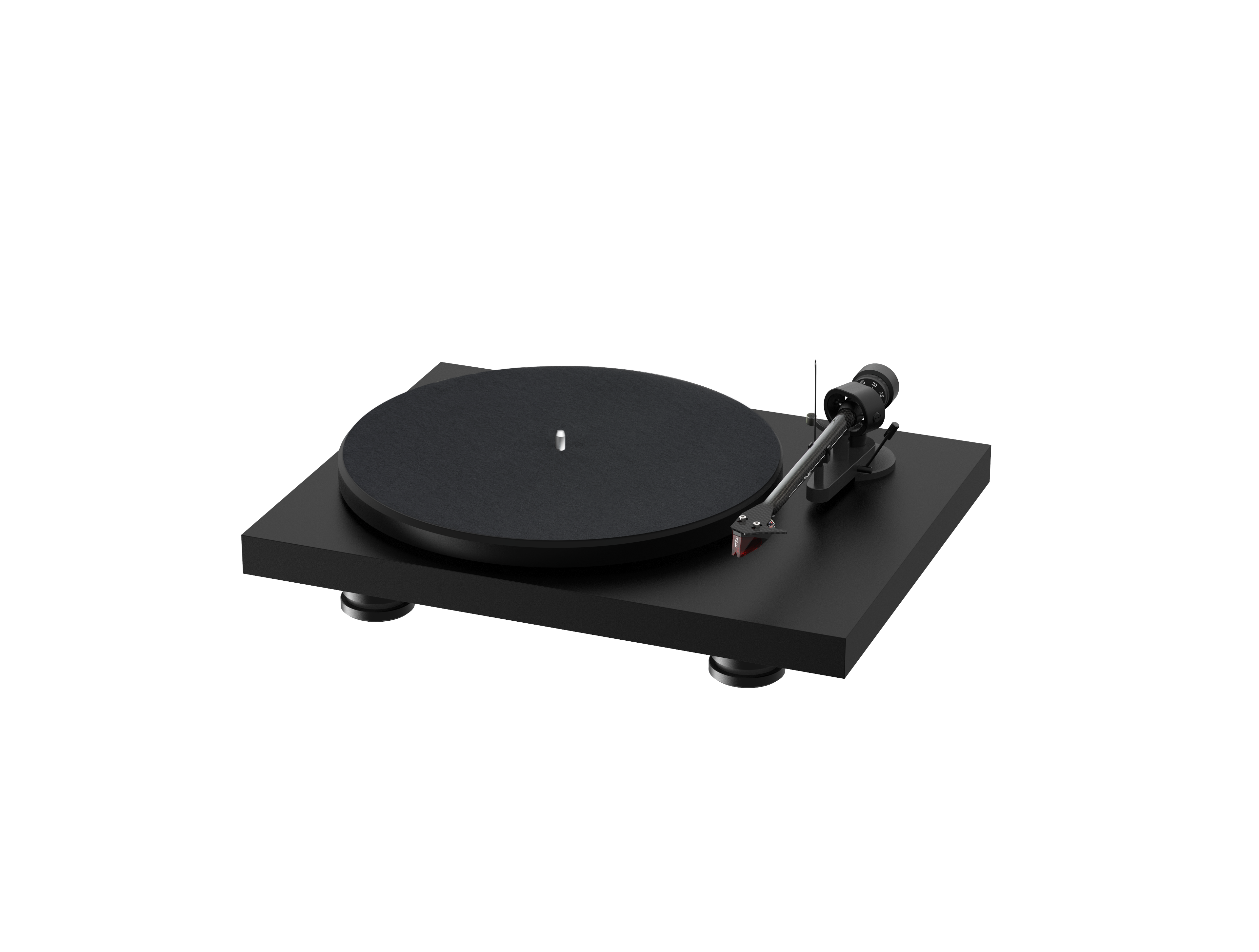The Debut Carbon Evo features an 8.6-inch one-piece carbon fibre tonearm, which provides improved rigidity and enhanced tracking. It comes fitted with an Ortofon 2M Red cartridge (pre-adjusted, £85 value) and a polished elliptical diamond stylus, ensuring minimal vinyl wear while delivering an open, dynamic sound.