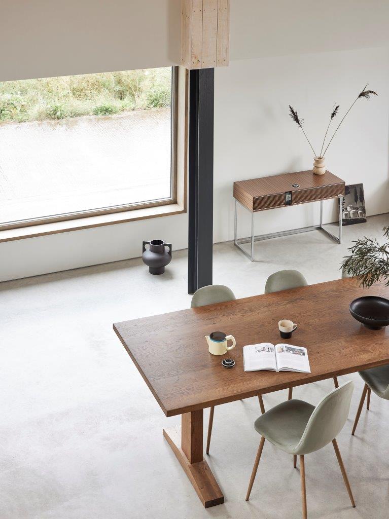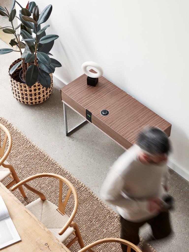 Enhancing its distinctive aesthetic is the special wood selected for the handcrafted grille and veneered cabinets, available in soft grey or walnut. Made from fast-growing sustainable woods that are spliced and reconstituted, the resulting grain patterns closely resemble slow-growing hardwoods without the ecological impact.