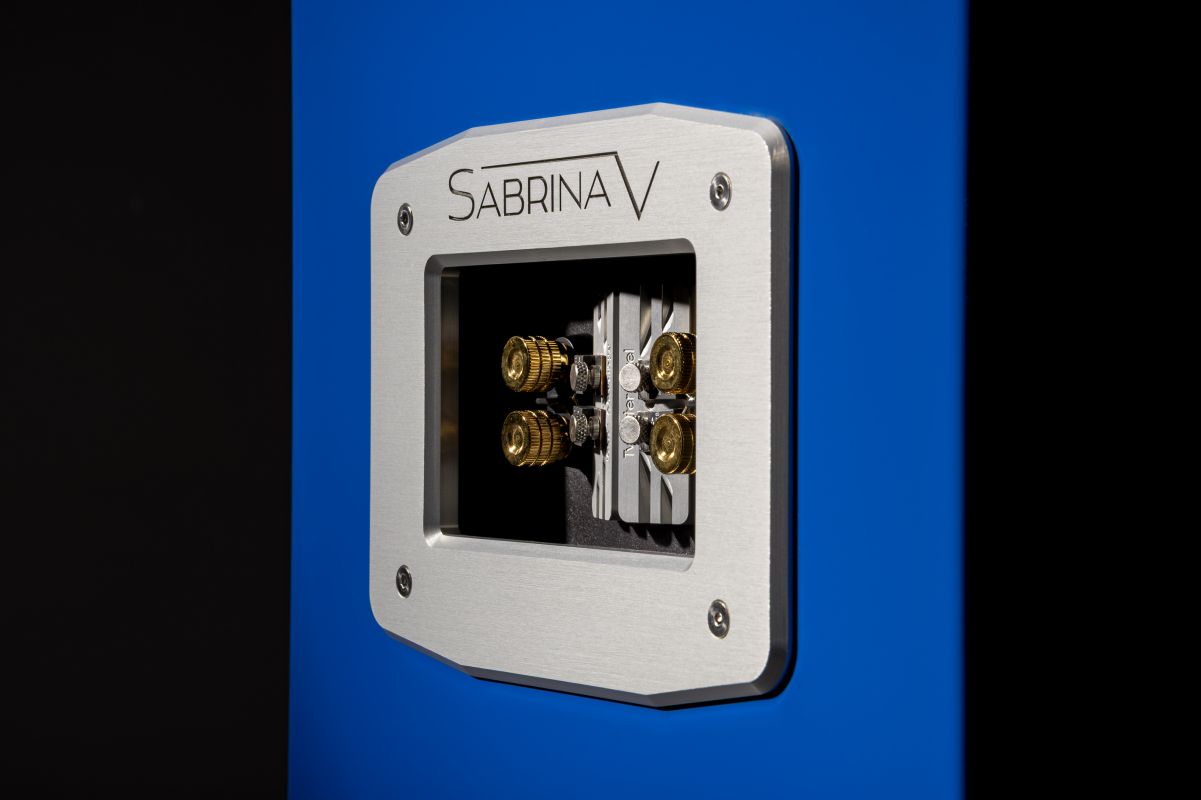 Resistors are secured with high-quality toolless thumbscrews, which makes tweeter and midrange resistor changes swift and intuitive. This new access point on the back of the enclosure is accentuated with a machined aluminium frame with the Sabrina V logo.