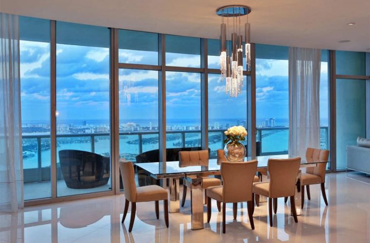 Its waterfront view overlooks Biscayne Bay and the Atlantic Ocean, which can be seen from the 991sq ft of terrace space.