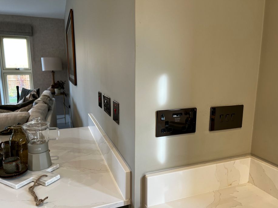 The specification at Ellenbrook also boasts the addition of Luceco’s external up/down decorative wall lighting with PIR sensor and adjustable time and lux controls. Inside each home, find BG Electrical accessories, including BG flatplates in black nickel, switches and sockets, USB sockets, ceiling pendants and decorative bell pushes.