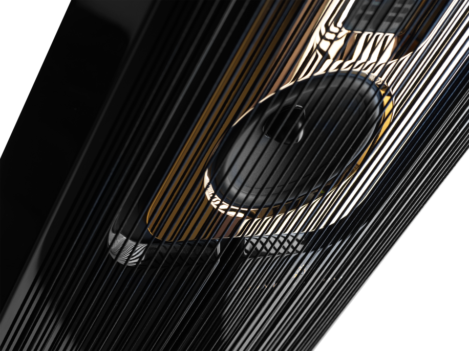 The exposed design also resembles an open piano, with the bronze-gold lacquered frame and sound technology details visible from the back side. Every Model C is assembled and finished by hand in Skive, Denmark. The black lacquered and gold-plated parts are made to the same quality standards as a Steinway & Sons piano, giving the speaker its unmistakable appearance. Customized lacquers and finishes are available on request.